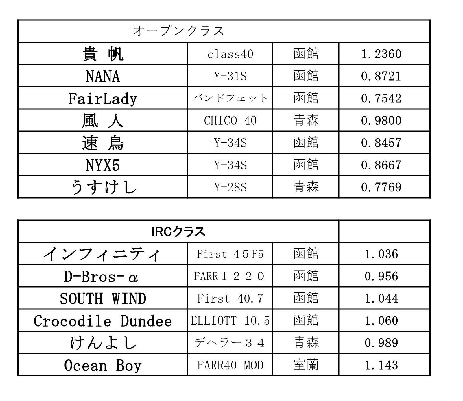 2025 海峡レース・レイティング