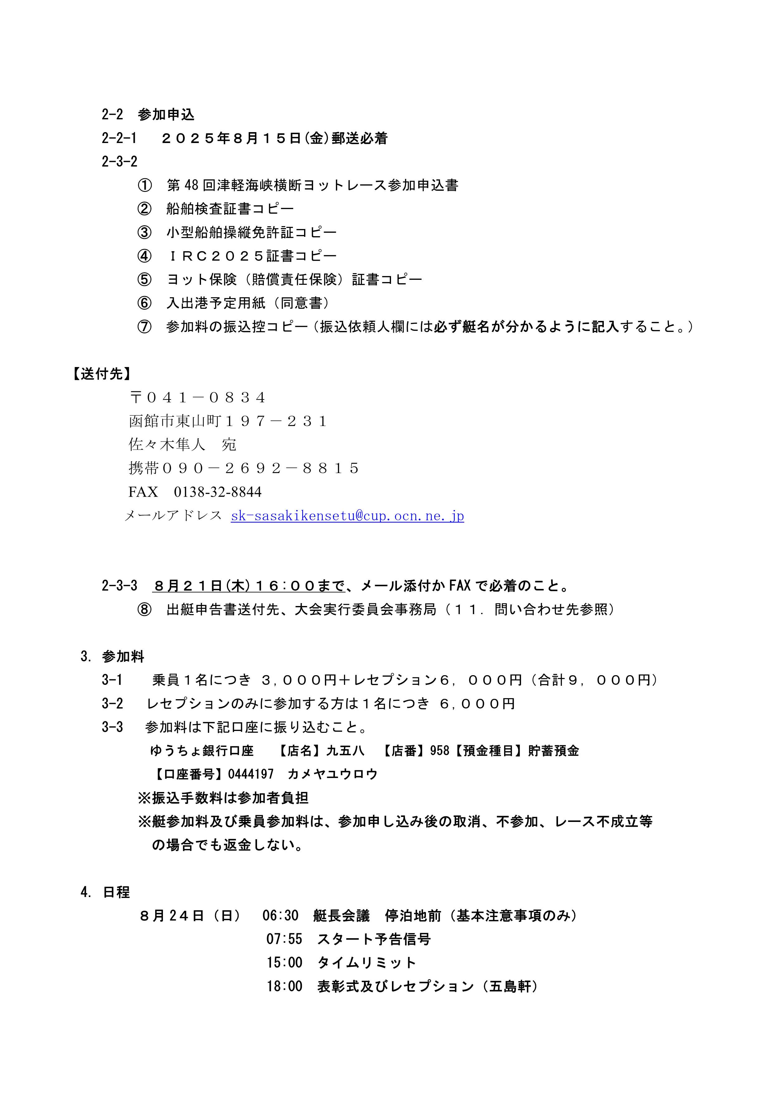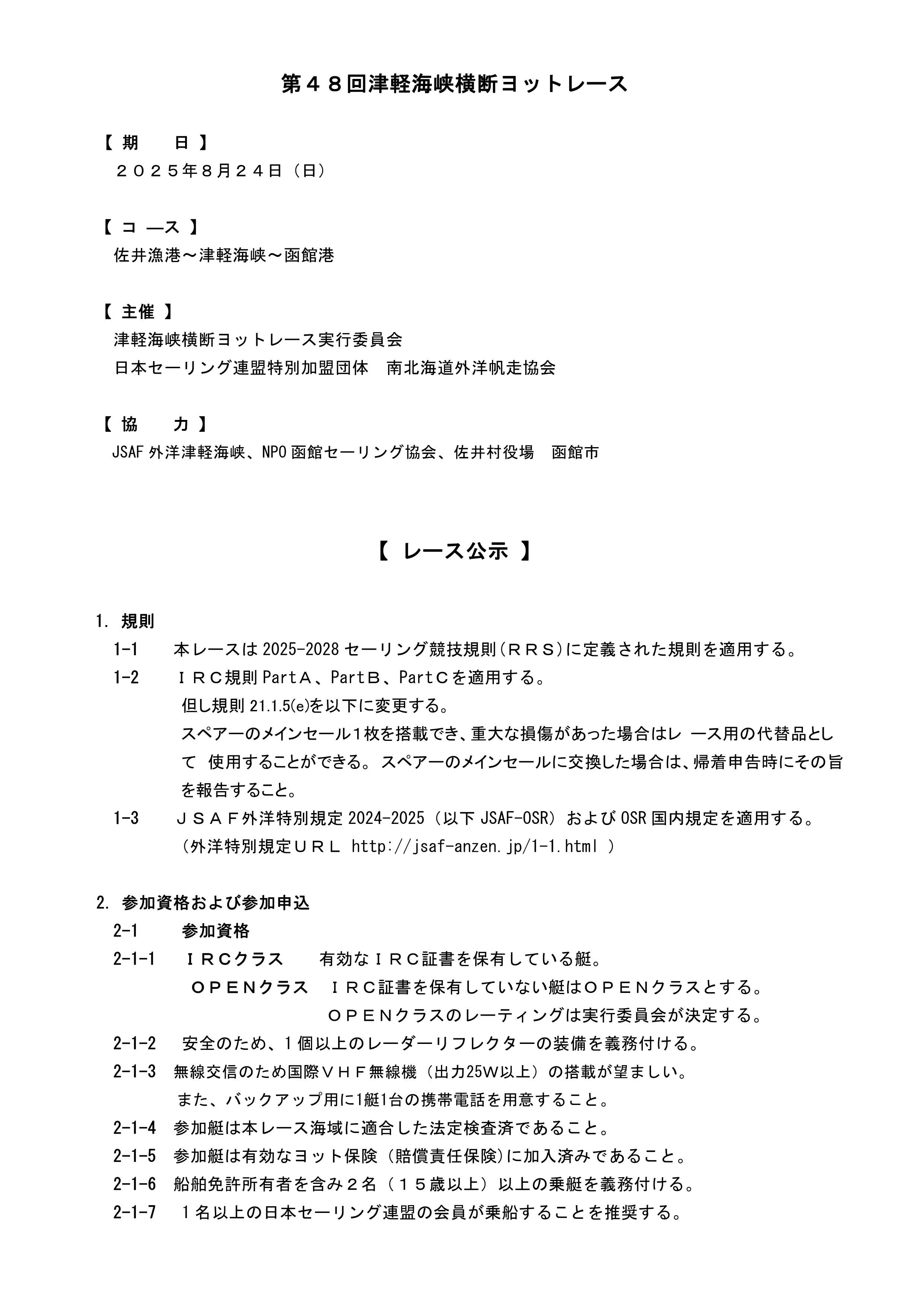 津軽海峡横断レースのご案内